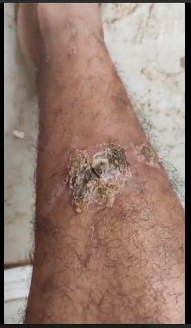 Screenshot of a video shared with BVMN by a person detained in Amygdaleza, representing an injury on one detainee’s leg, due to a skin condition, October 2025.