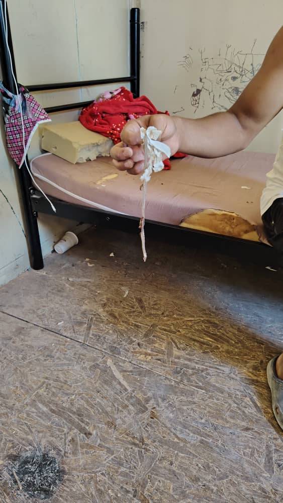 صورة تُظهر مدى اتساخ الحاويات التي ينام فيها المحتجزون.