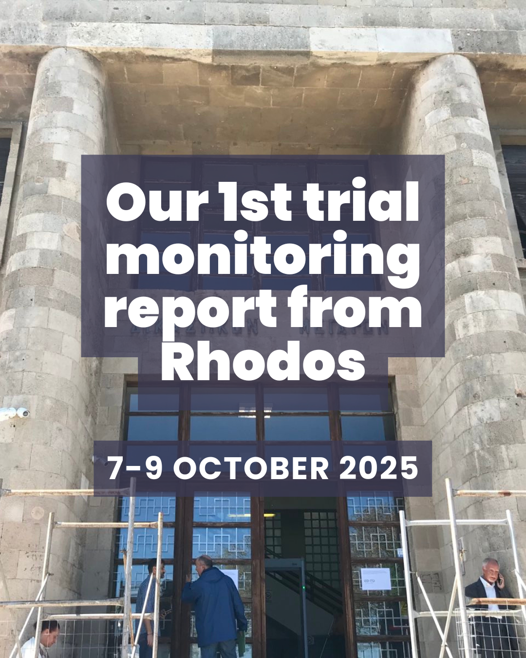 Unlike most other courts observed, the Appeals Court of Rhodes made a notable effort to comply with its obligations under Article 6 (1) ECHR, which requires hearings to be not only formally public but also genuinely accessible to observers. The courtroom was open throughout the proceedings, and trial observers were able to follow the hearings without obstruction of transparency and public oversight. While the police asked what we were doing in the court room for three days, a short explanation was sufficient to be left alone for the remainder of the trials.