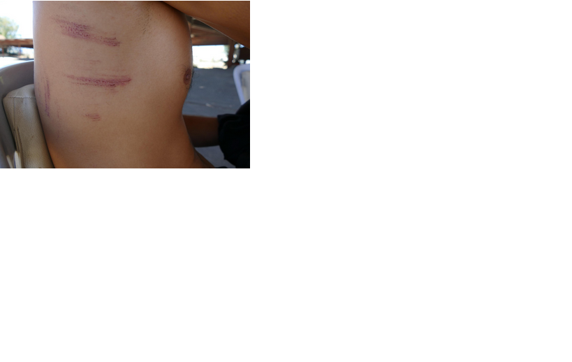 "I don't understand why he is so violent every time he meets me," says the boy. The picture below depicts the wounds this young man suffered due to the kicking.